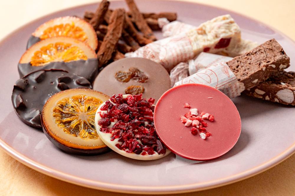 基本となるチョコレートには、口どけ滑らかなベルギー製のクーベルチュールチョコレートを使用。チョコレートと組み合わせる素材に応じて、ビター、ミルク、ホワイトのチョコレートを使い分けたり日本製のチョコレートをブレンドしたりと、素材が引き立つように厳選しています。人気の「岩塩×アーモンドチョコレート」には、ヒマラヤ山脈で採れるクリスタル岩塩を使用しています。