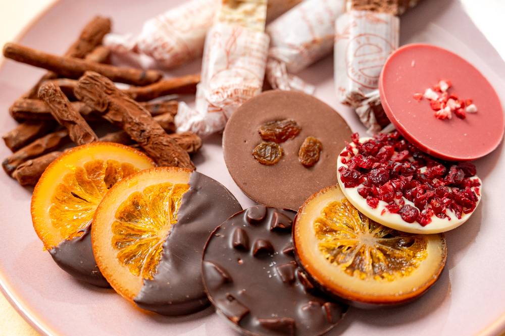 ショコラボのチョコレートは、大量生産では決して出せない「人の手の温もり」が隠し味。例えば、ショコラ棒には1本ずつ手作業でグラシン紙が巻かれており、食べる人の手が汚れないようにと配慮されています。手仕事だからこそ生まれる、想いのこもった一品です。