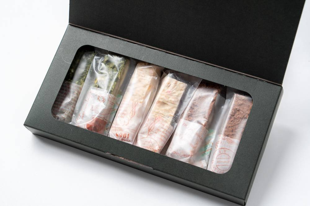 この3種類を一箱で味わえます。個性豊かな味わいはギフトにも、自分へのご褒美にもピッタリ。各フレーバー2本ずつ入っているので、満足感ある食べ比べが愉しめます。