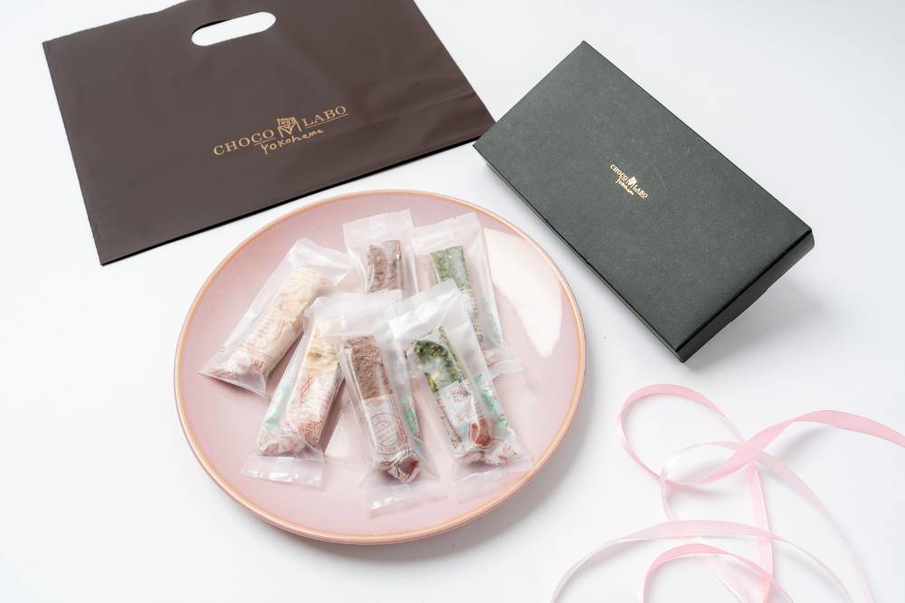 ベストセラーのクランチチョコレート「ショコラ棒」の詰め合わせ。