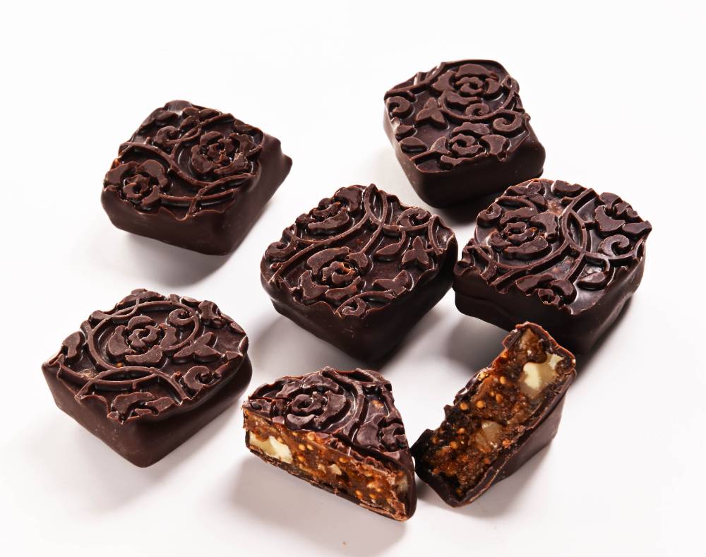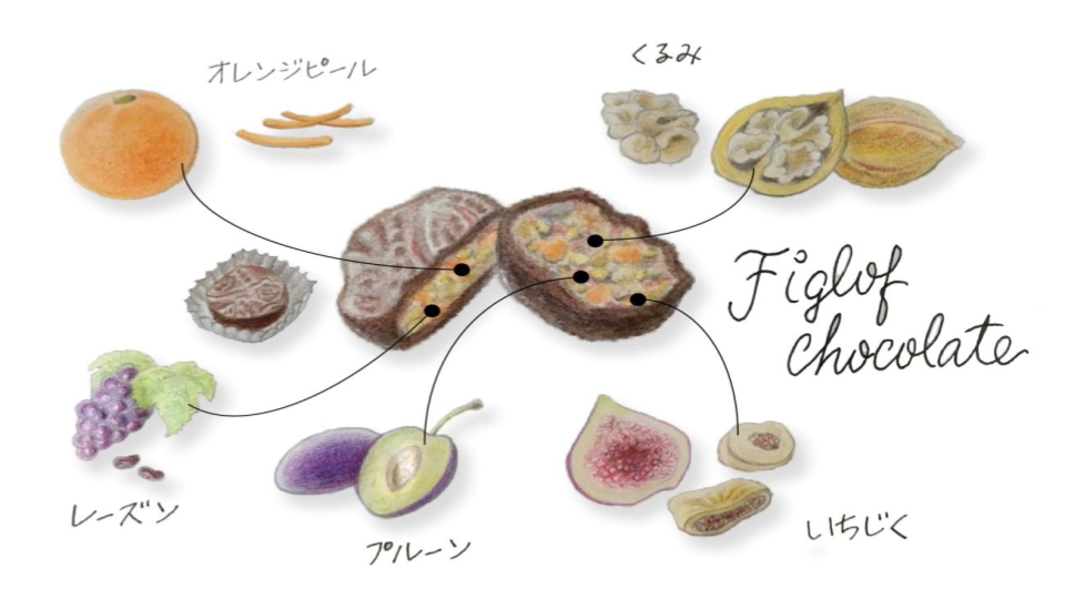 コーティングにはベルギー製のスイートチョコレートを使用。甘さを抑えたすっきりとした味わいが、いちじくやレーズン、はちみつの自然な甘みを引き立てます。