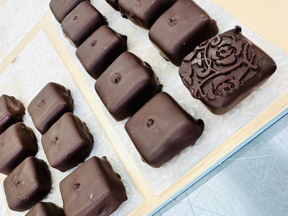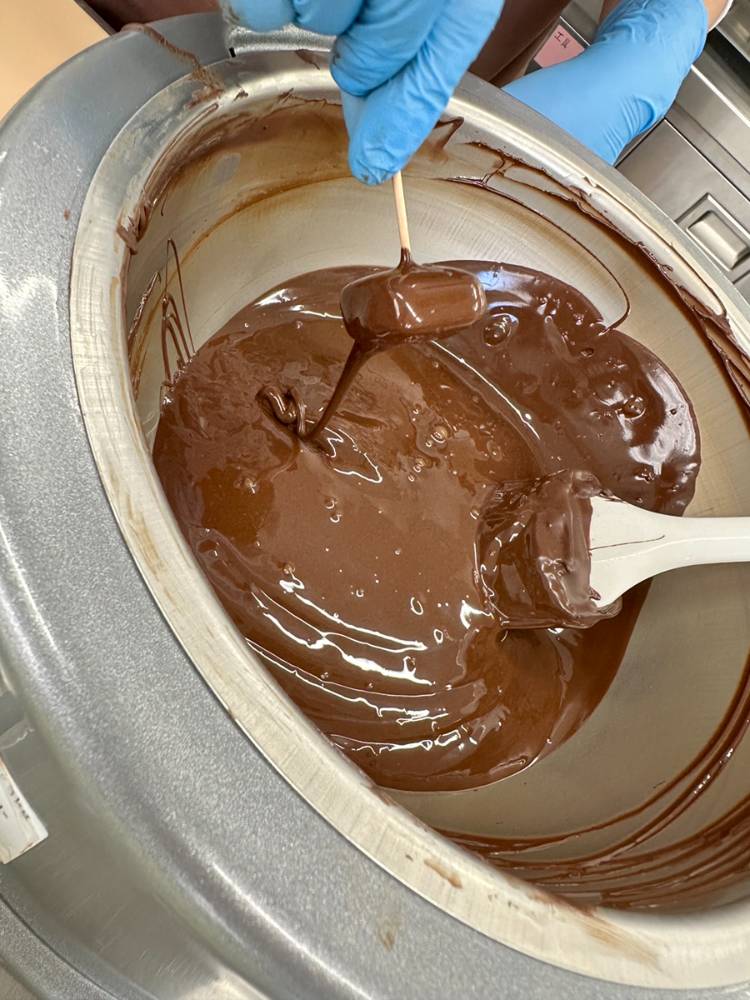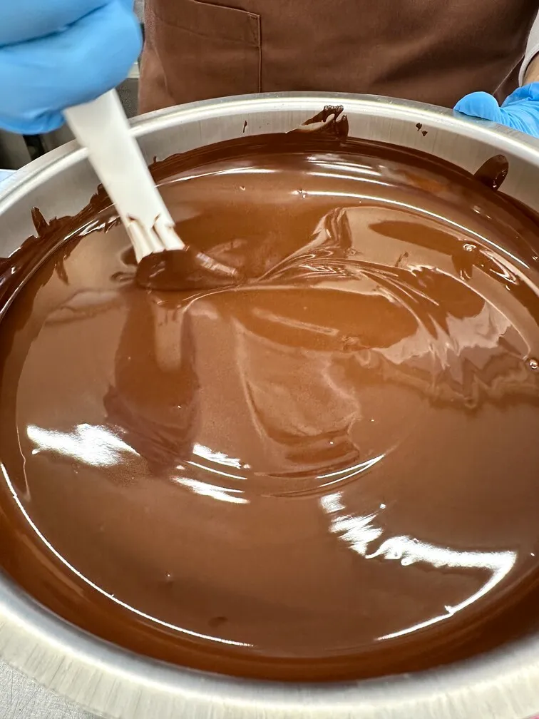 「製造をするときは、キレイに正確に作業をすることを心掛けています。特にテンパリングをする際には、チョコレートの温度に気をつけながら、チョコレートが重くならないよう、空気が入り過ぎないようにチョコレートを混ぜるようにしています。」