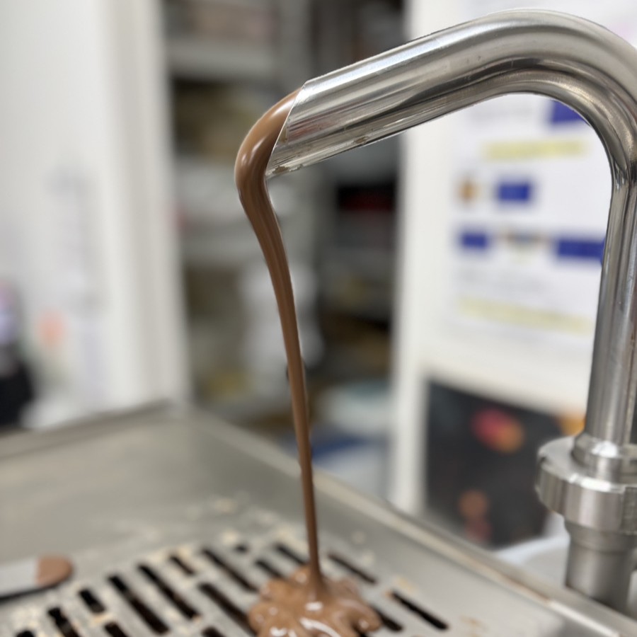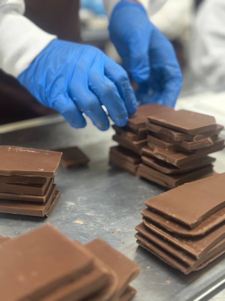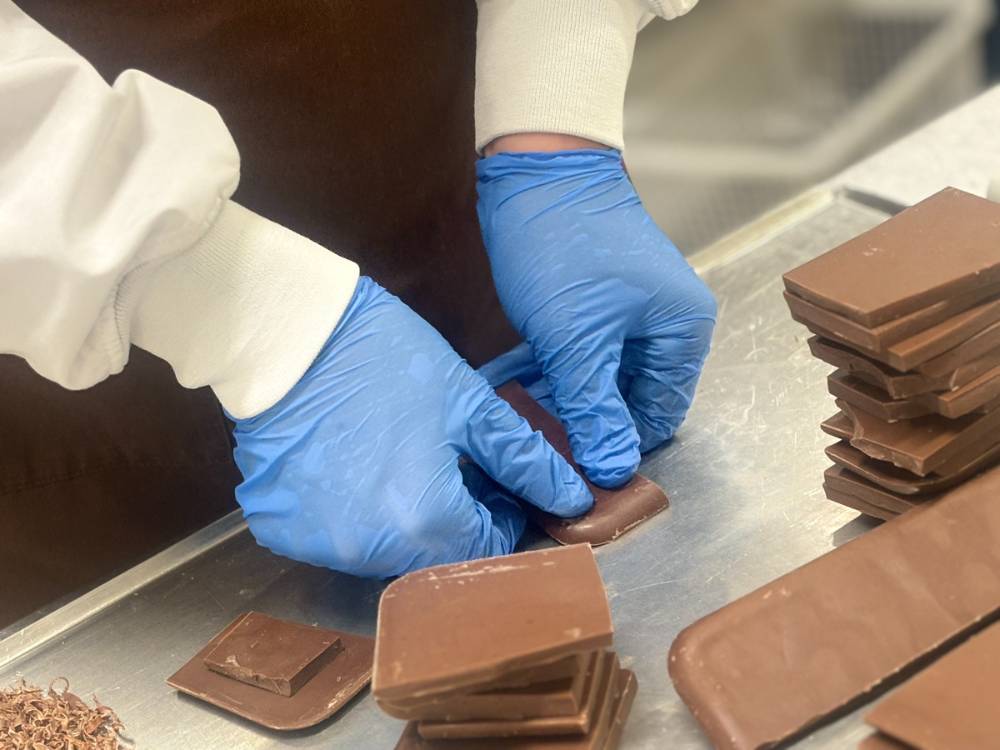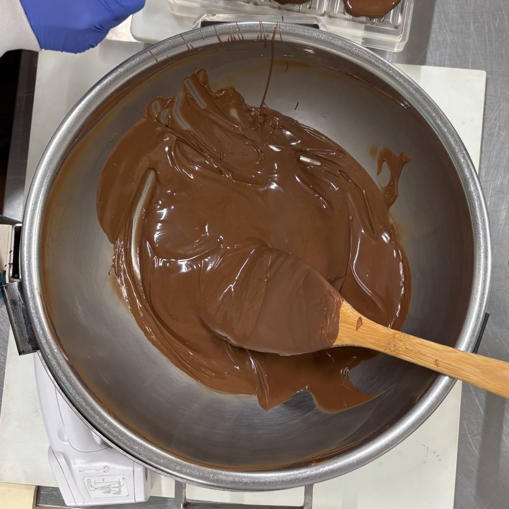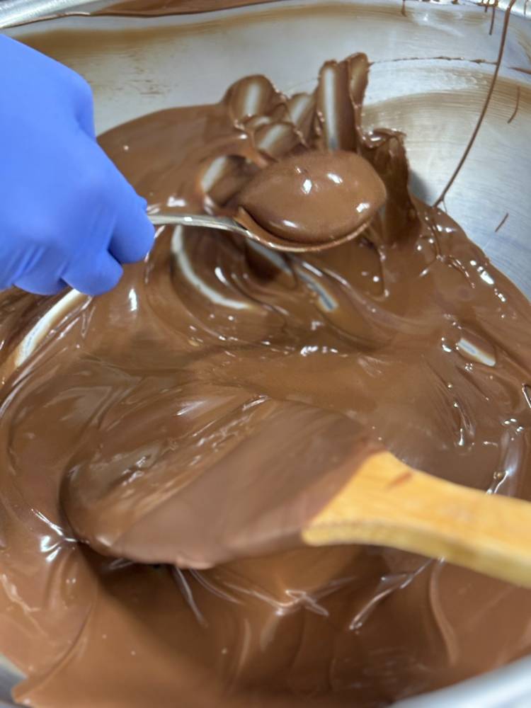 ショコラボのチョコレートは、大量生産では決して出せない「人の手の温もり」が隠し味。個性あふれる職人たちが徹底した衛生管理のもと、温度管理や混ぜ合わせの工程をその日の状態に合わせて細かく調整しながら作り上げています。